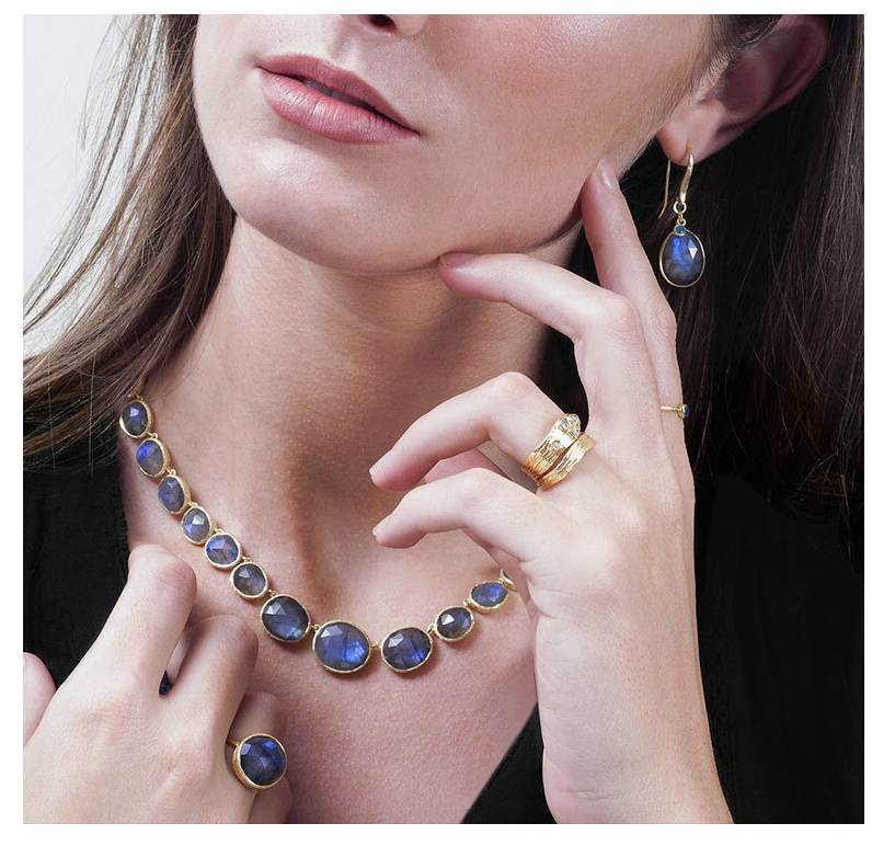 Imagen de pendientes y collar con labradorita de la firma Jorge Revilla
